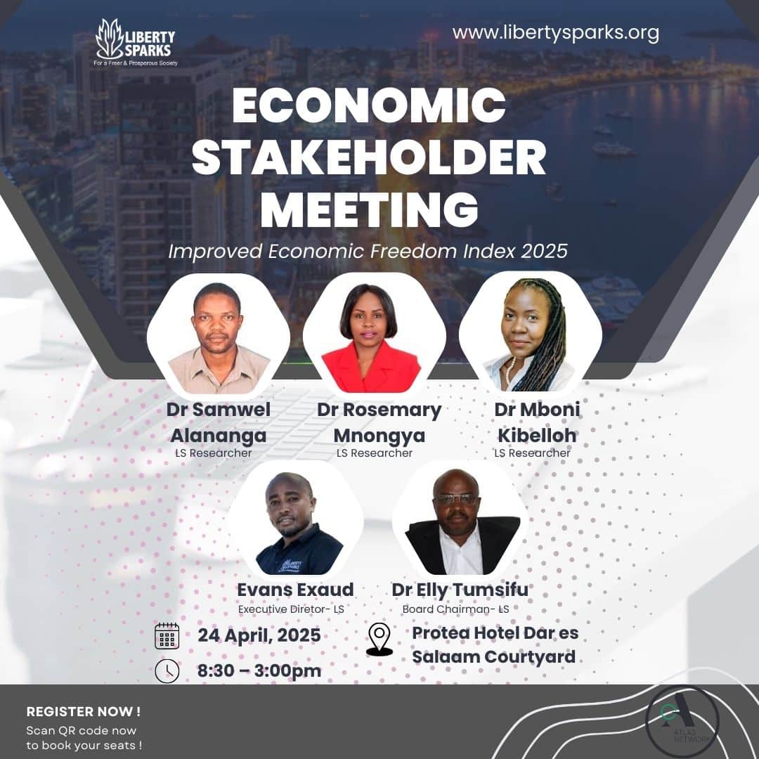 This high-level meeting brings together government, private sector, academia, and civil society leaders to explore practical reforms for improving Tanzania’s Economic Freedom Index score. Key focus areas include government size, property rights, sound money, trade freedom, and regulation.